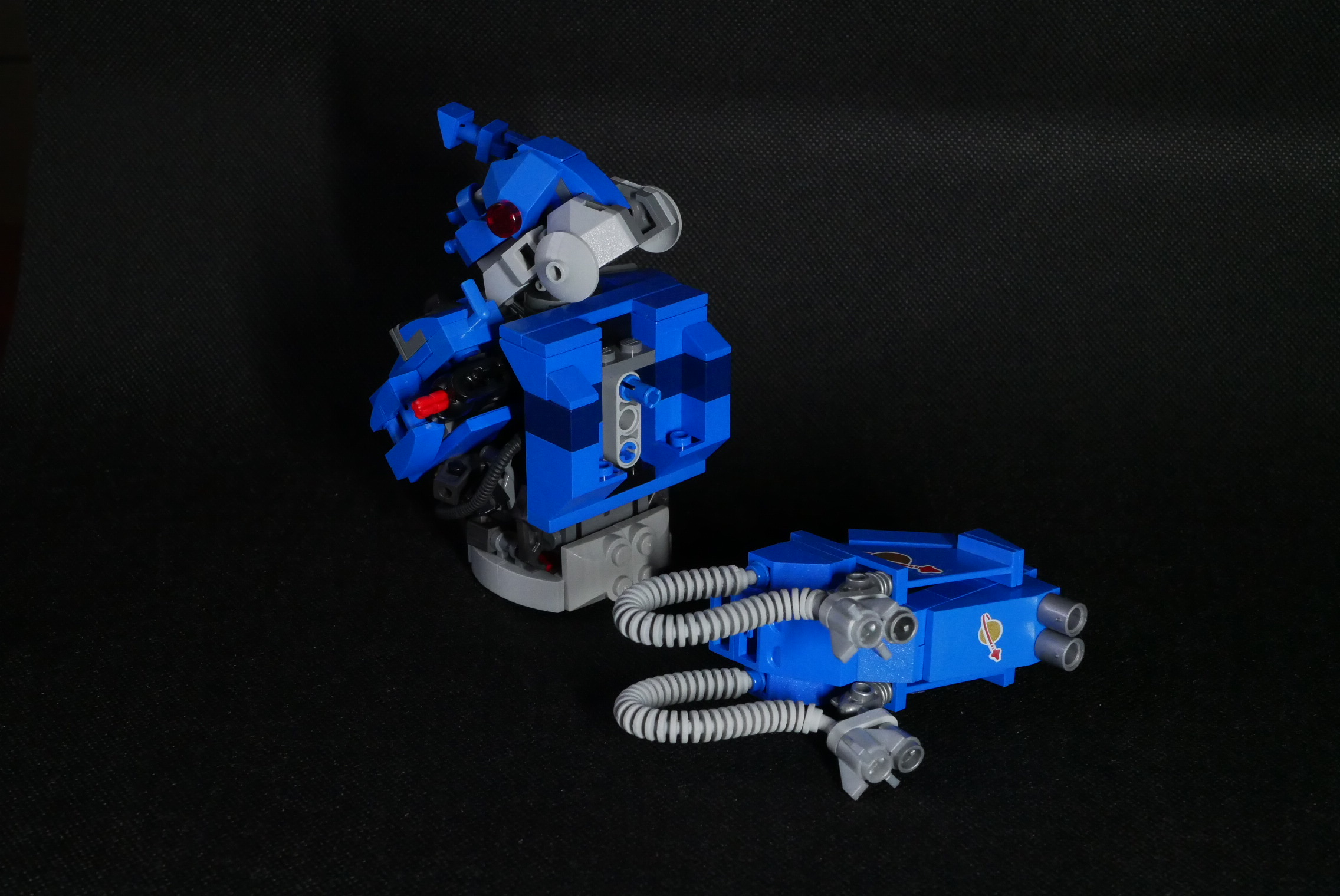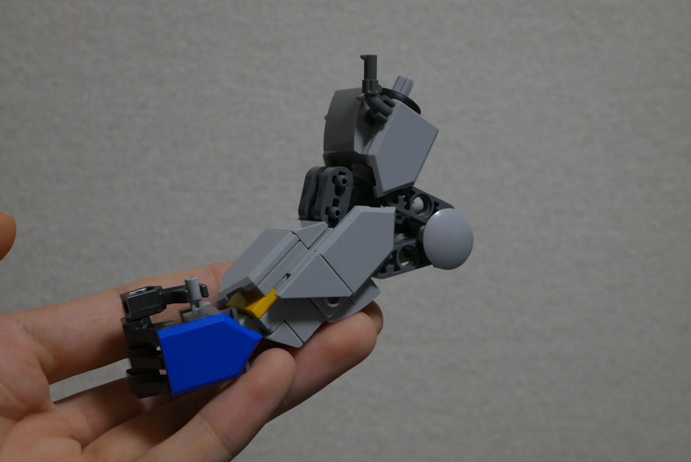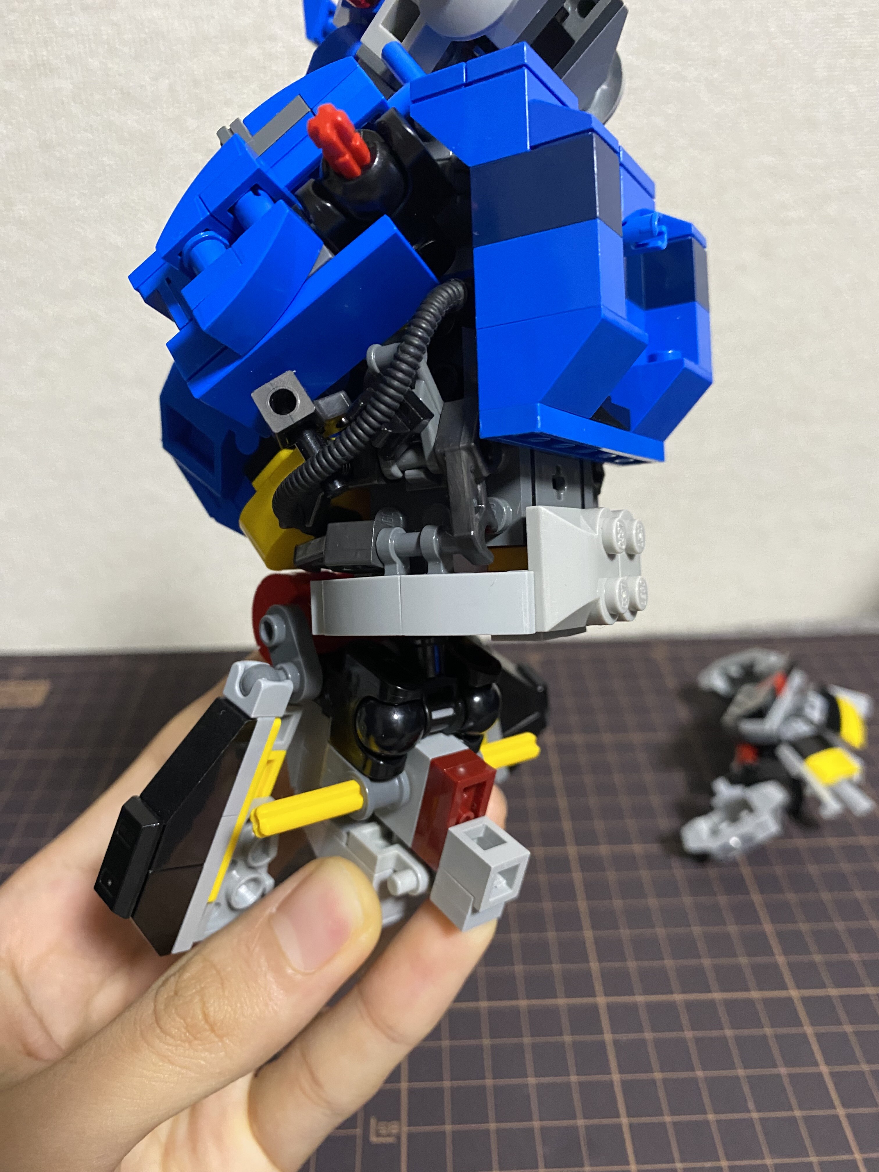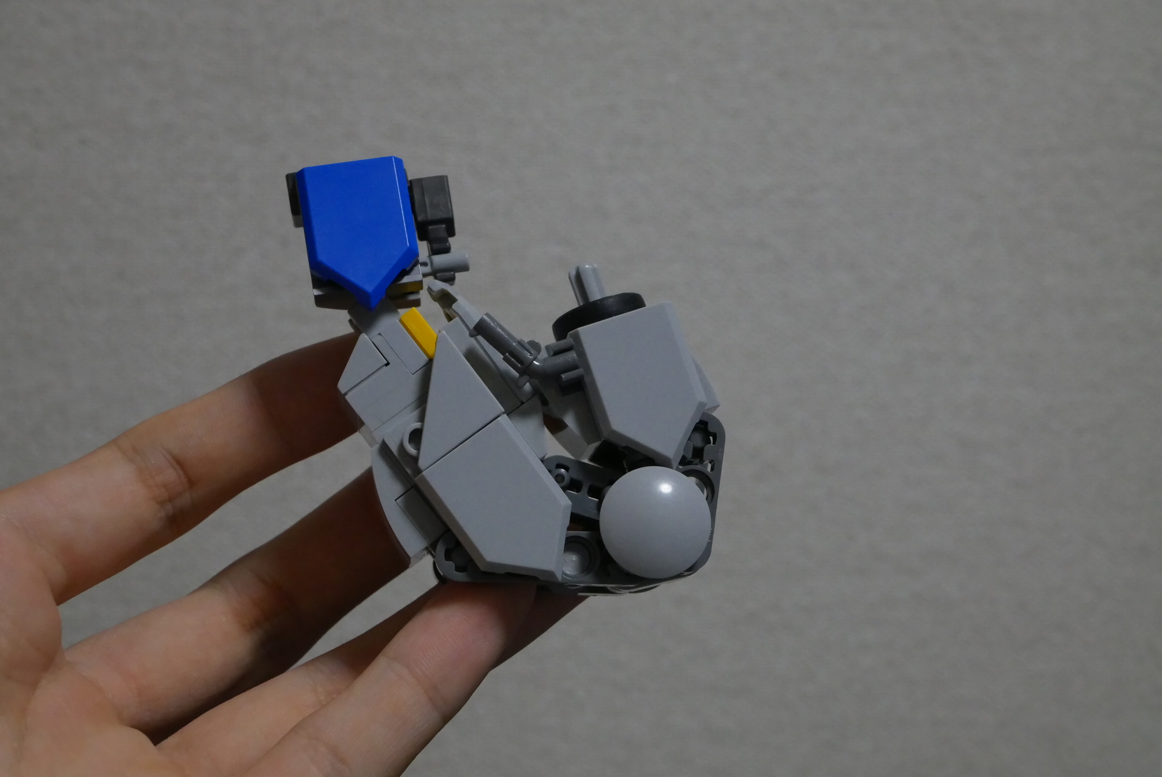 4つ目はフィグ乗りにすること。実は今回の作品フィグ乗りです。コックピットは背中に付いていて独立しています。コードギアスのナイトメアフレームをイメージ。このサイズで体内にミニフィグを入れるのは今の私の技術では無理でした。