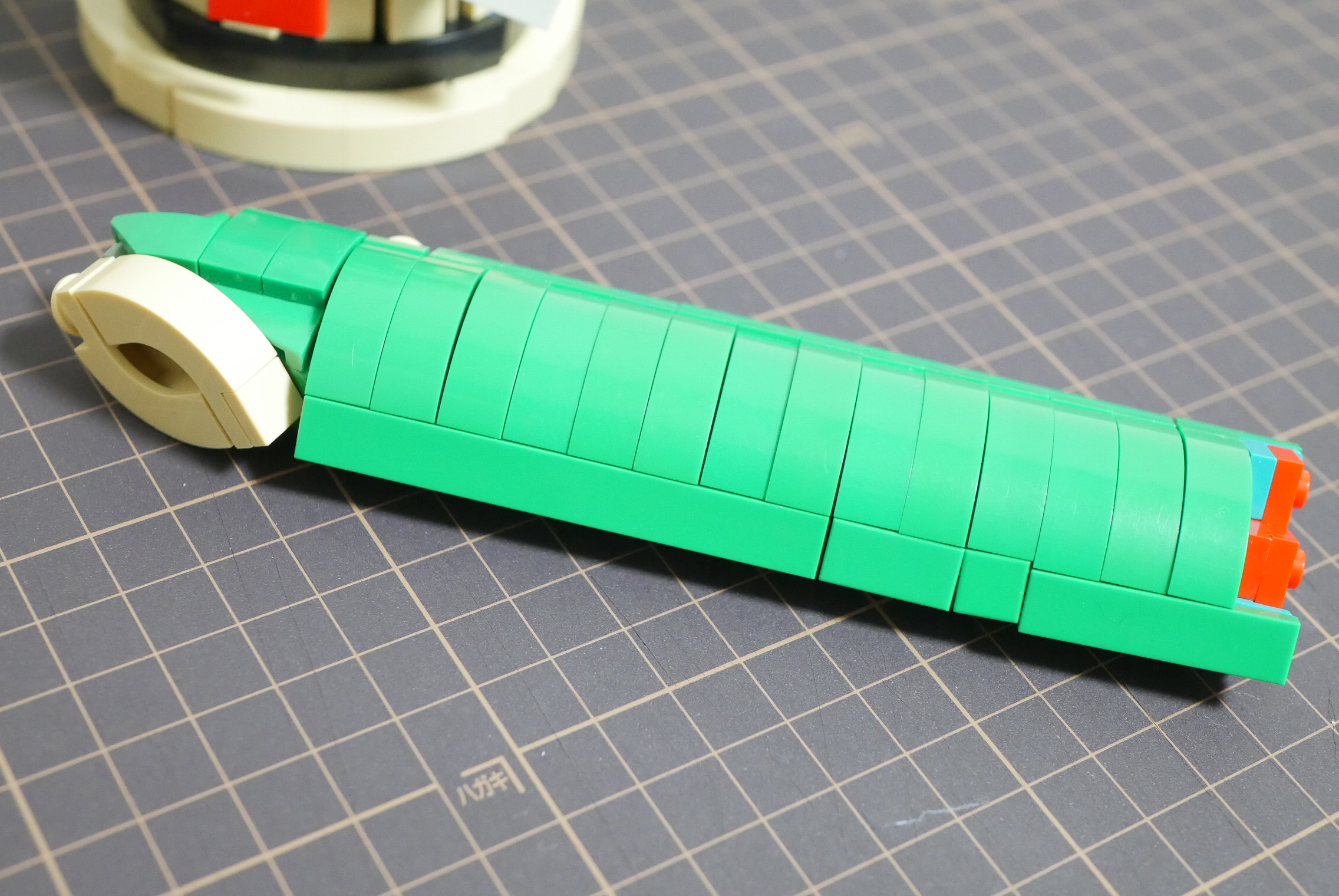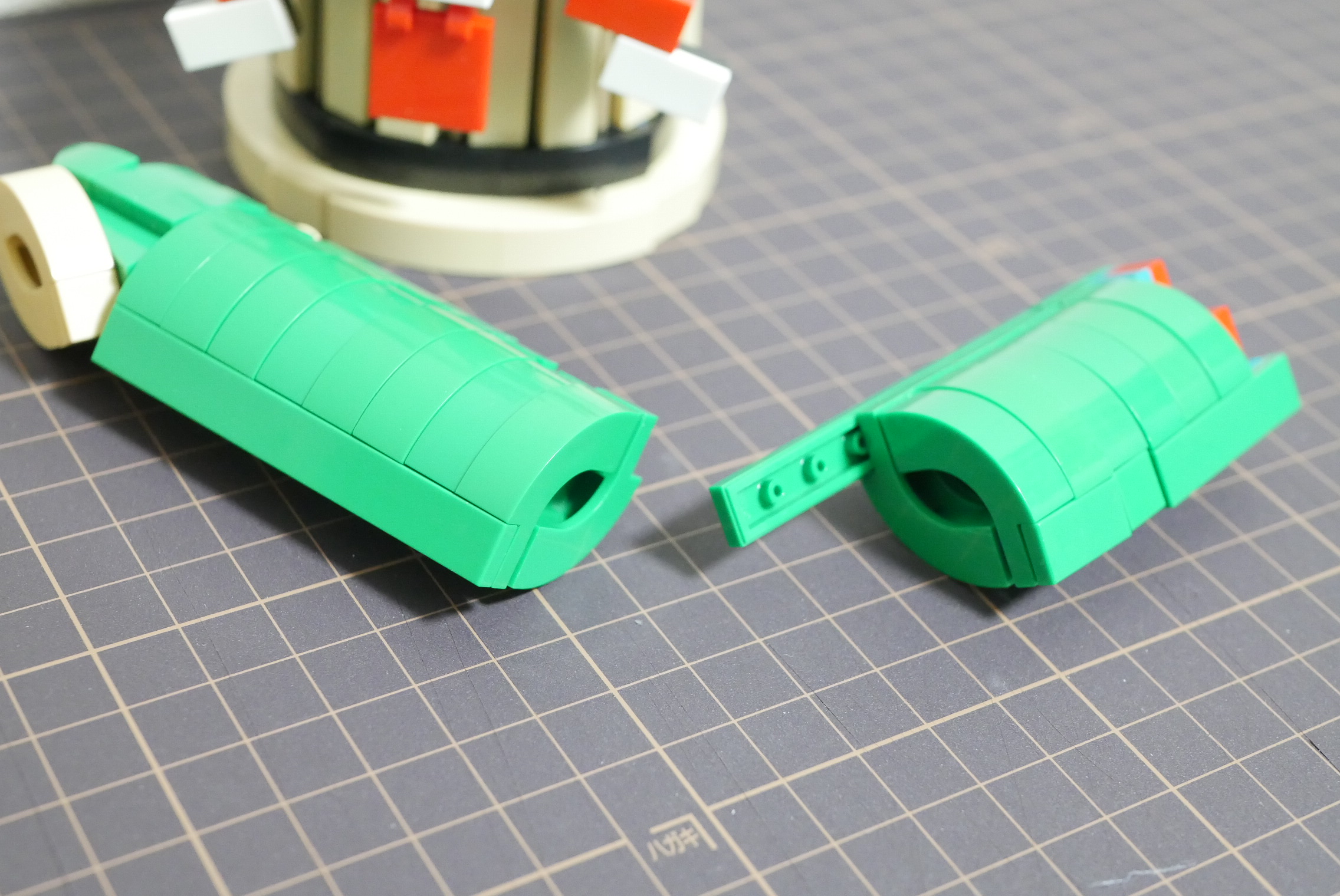 やはりフォーカルポイントとなるのは竹の部分。断面をどう上手く表現するのかが課題でした。そこで思いついたのがアーチの反転接続。ポッチ裏にハーフピンを差し込んであるので本来ではメス・メス同士の部分でも接続できています(ピンが痛む危険のあるイリーガルビルドですが…)