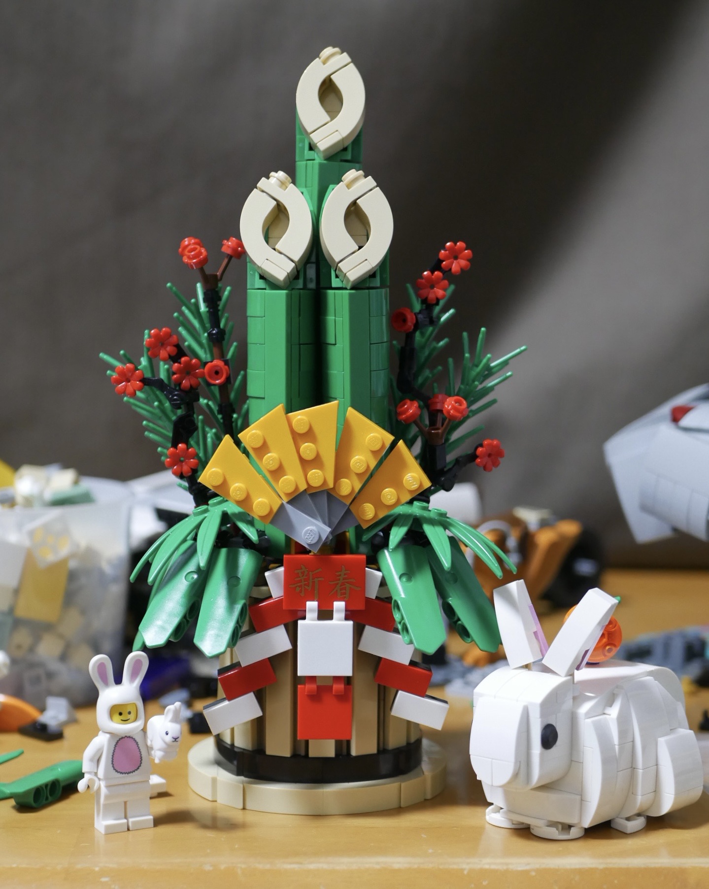 最初はうさぎだけを作るつもりでしたが、小さくなってしまいデカいのを可愛く作るのが難しかったので、今年は門松メインにしました。中々良い感じに仕上がったんじゃないでしょうか。門松つくって正解だったと思います。