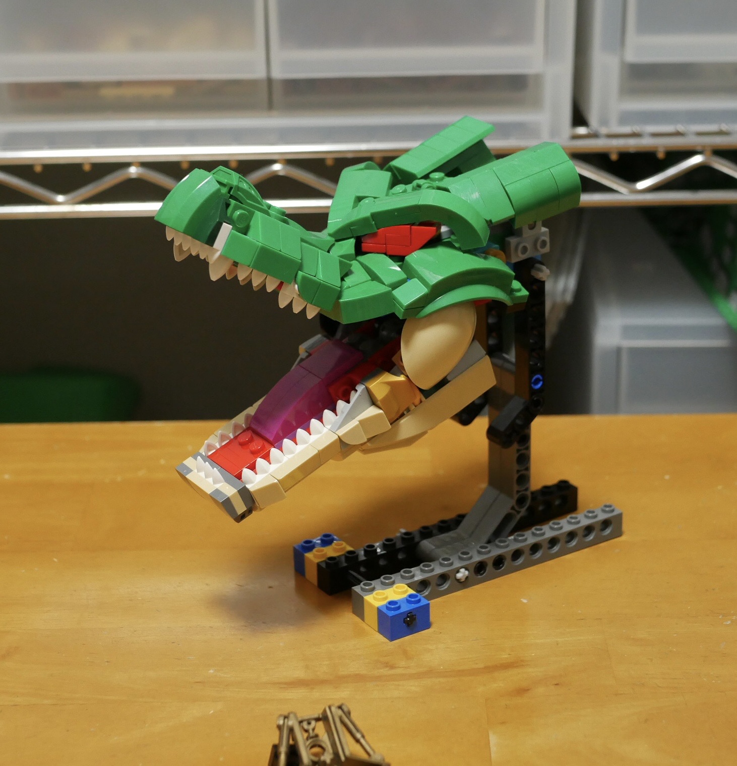背中のウロコはホースに1×2ラウンドプレートを通しただけですからね。段々腹?の1つ1つもミクセルジョイントで接続しているだけ。超シンプル。