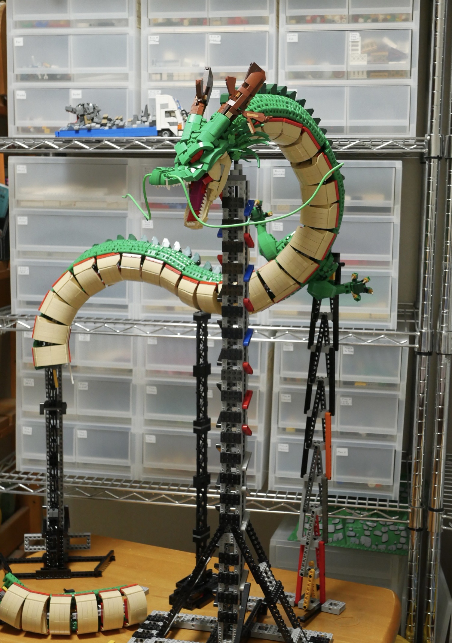 製作期間1年。真面目に神龍だけ作っていれば半年もかからなかったのですが、他の作品を作ったり(浮気)パーツ整理したりで全く作らなかった期間が多くあったためこのような長期スパンな作品となってしまいました。