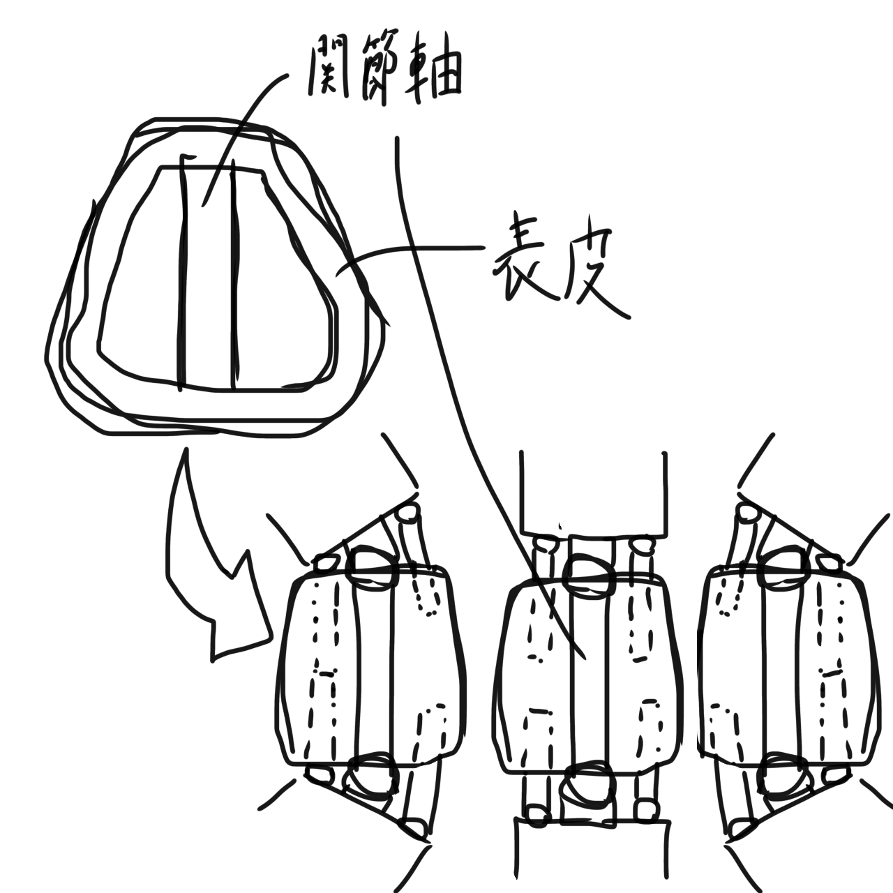 今回はこのようなレゴ生物における関節の露出と可動部に生じる隙間をできるだけ無くそうじゃないか、という試みです。