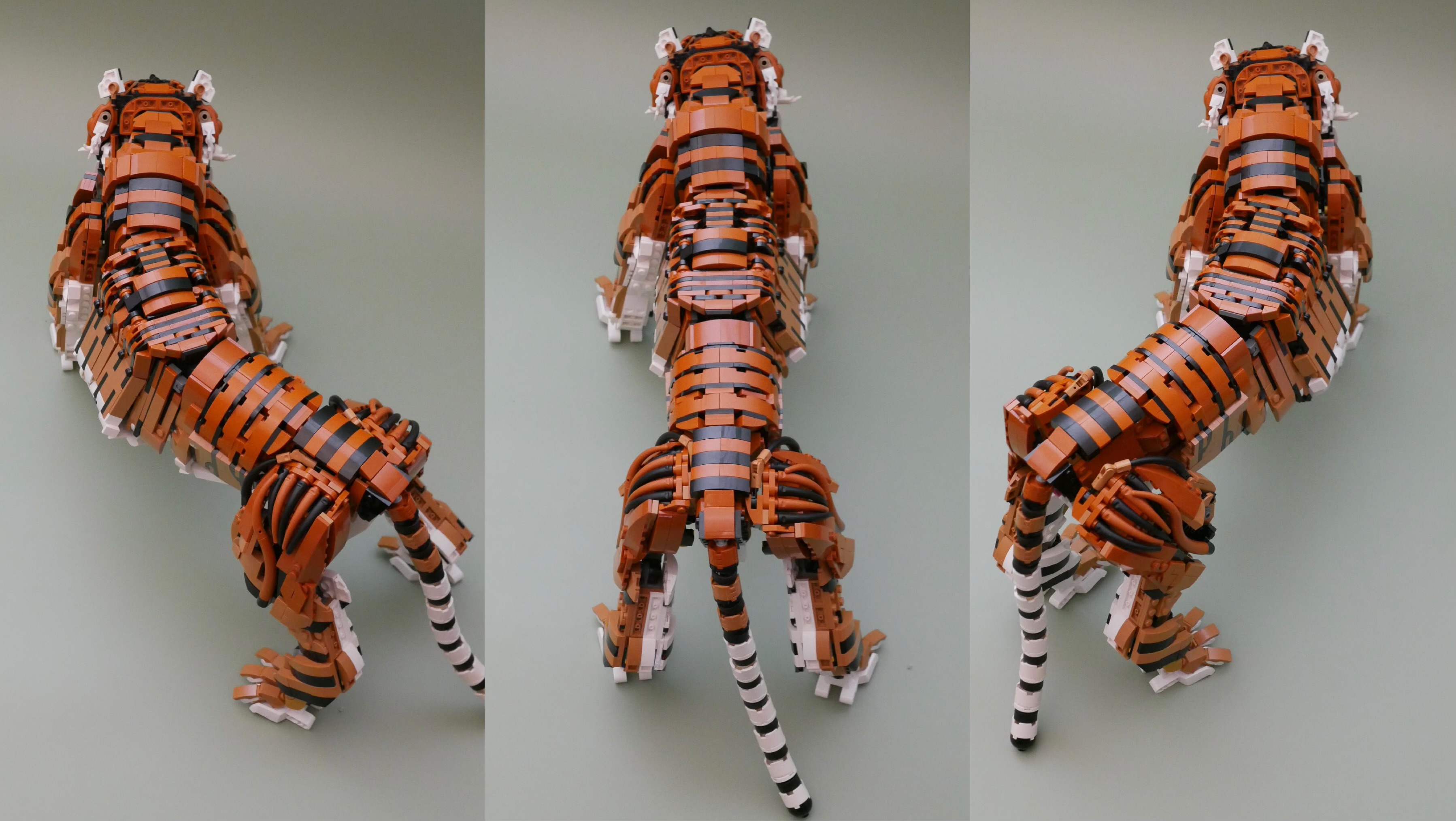 関節の露出したロボットと違い、動物は関節の表面を肉や皮で覆われ、それらが伸縮するため関節が隠れます。それを固い素材であるレゴで完璧に作るというのは結構難しいと思います。