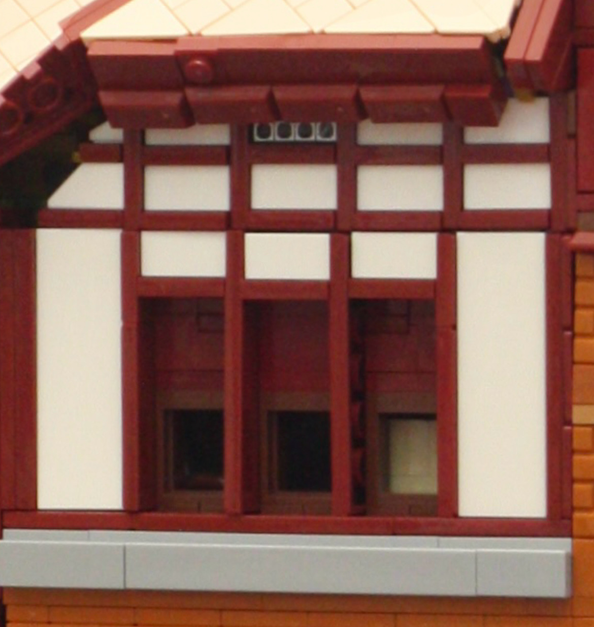 今年モジュラービルディングで発売されたチューダー様式の街角も同じようにティンバーフレームがありますが、漆喰部との差が無いとのっぺりとした印象を与えます(あれは周辺の情報量が多いのでメリハリが効いてて良いと思います)