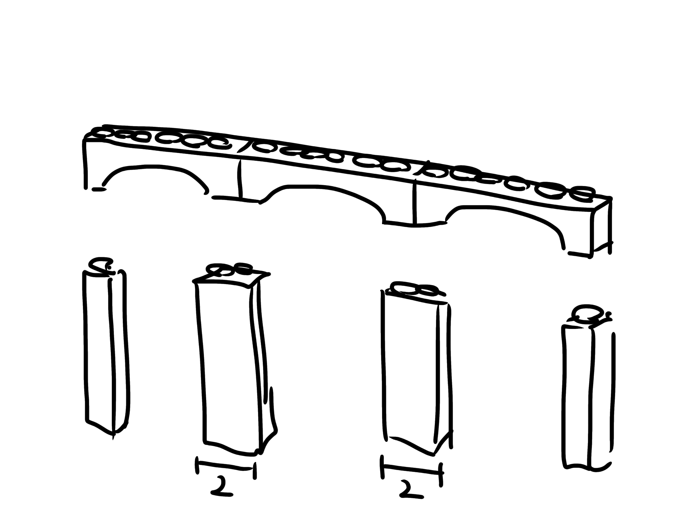 先程述べたように、実際の風見鶏の館が収まるようにスケールを落とすとミニフィグに対してかなり小さくなってしまうので、横幅は立面の縦横比は変えずに目一杯使い、平面の縦横比を変えることにしました。幅は48スタッドにすればギリギリ1/50スケールになります。