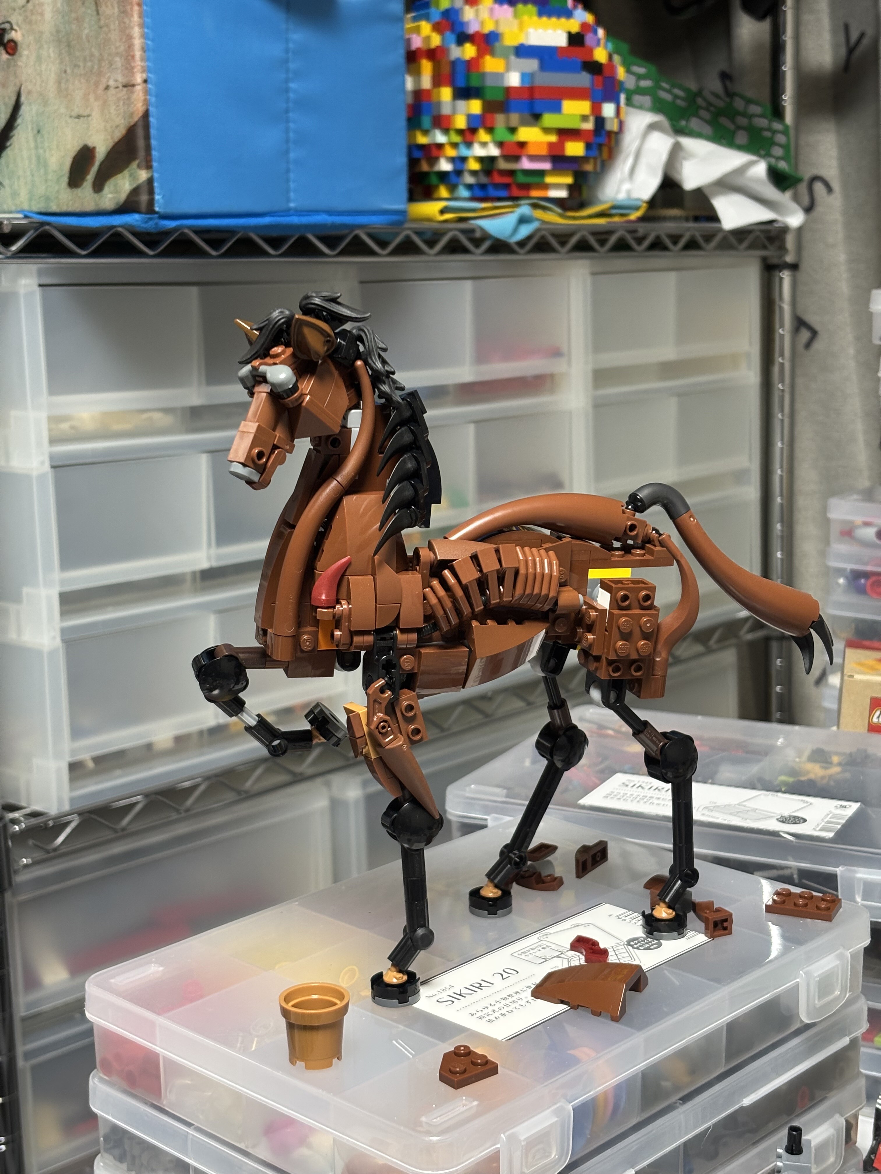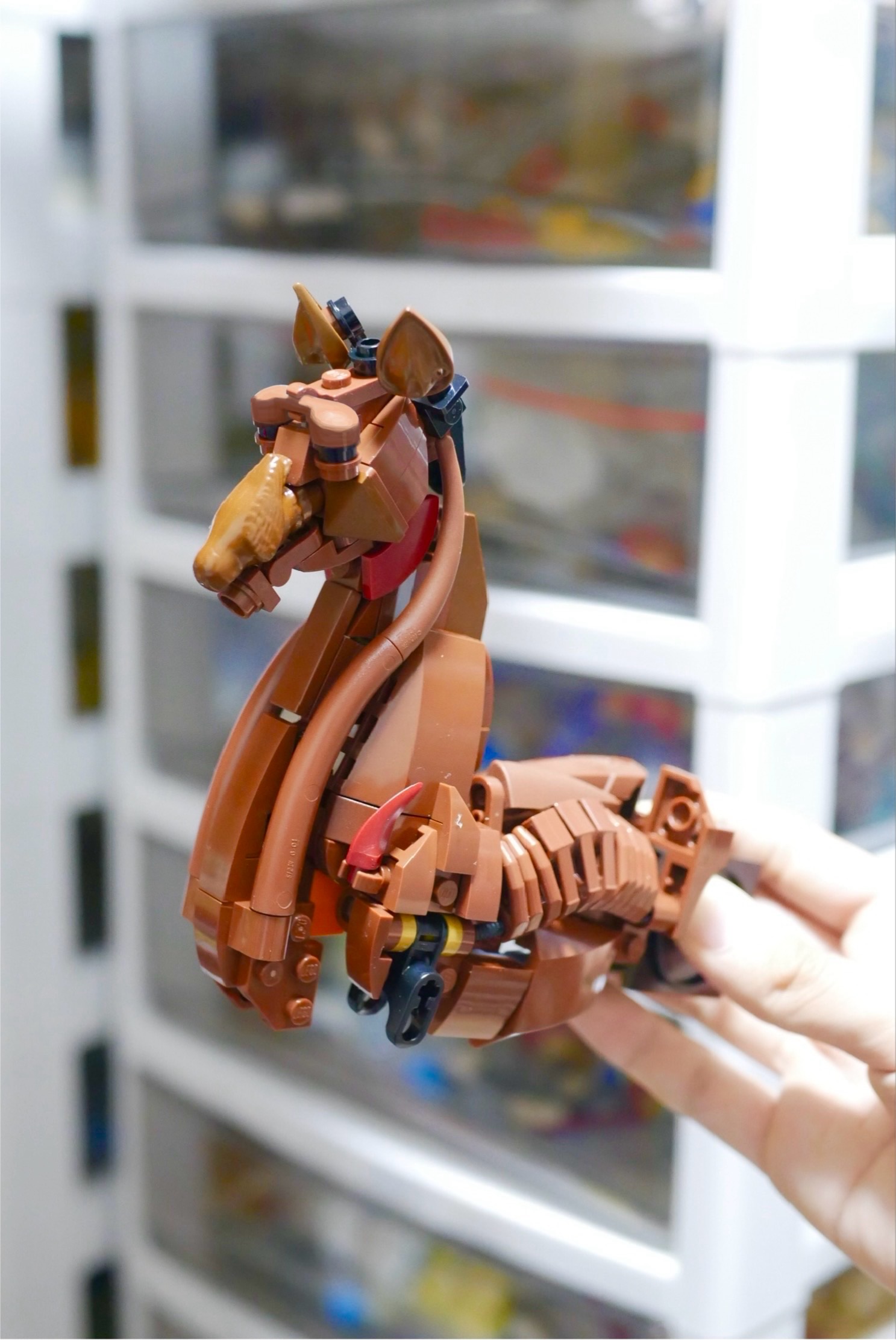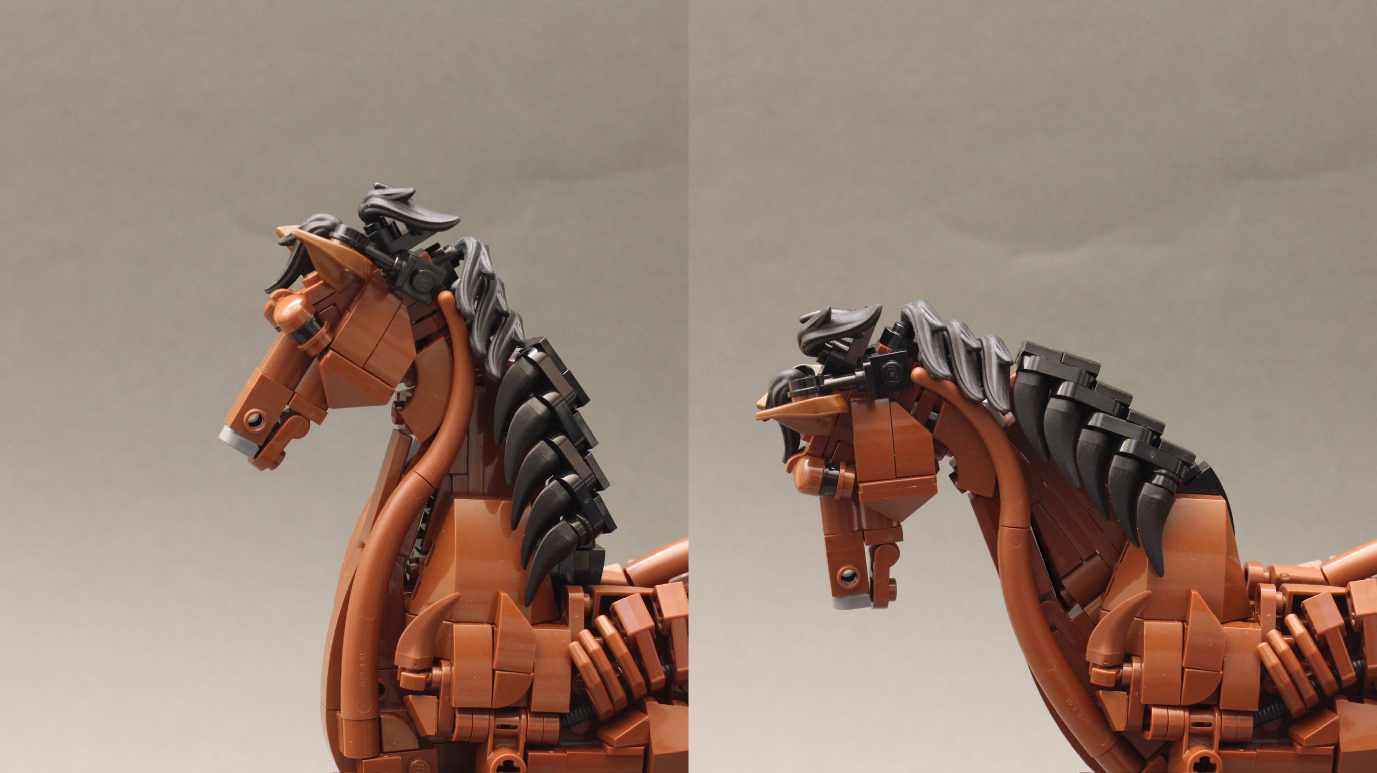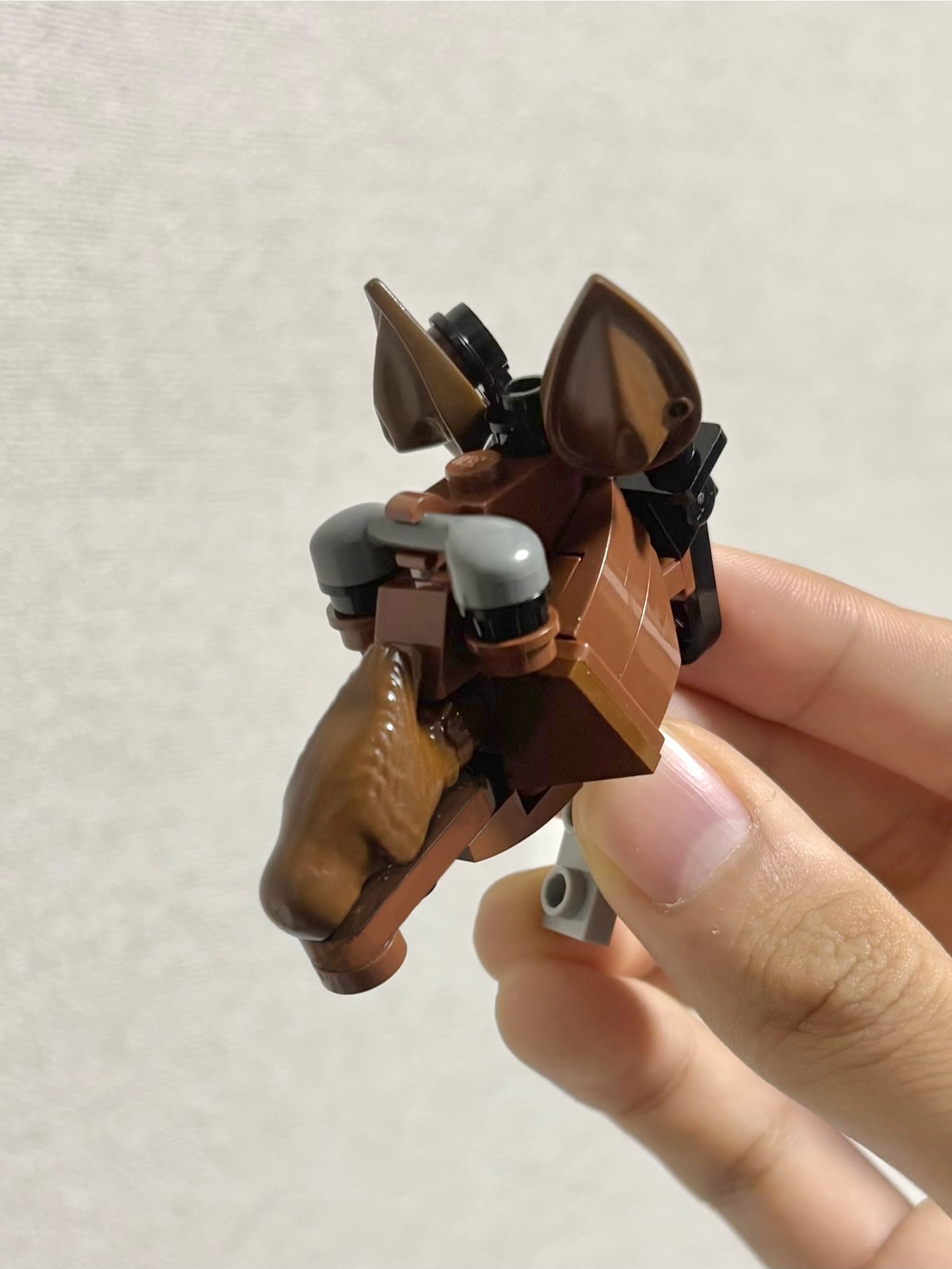 以前作ったトラなんかは顔の模様など複雑なのででかくなってしまいましたが、馬はシンプルなので少ないパーツ数で小さくできました。