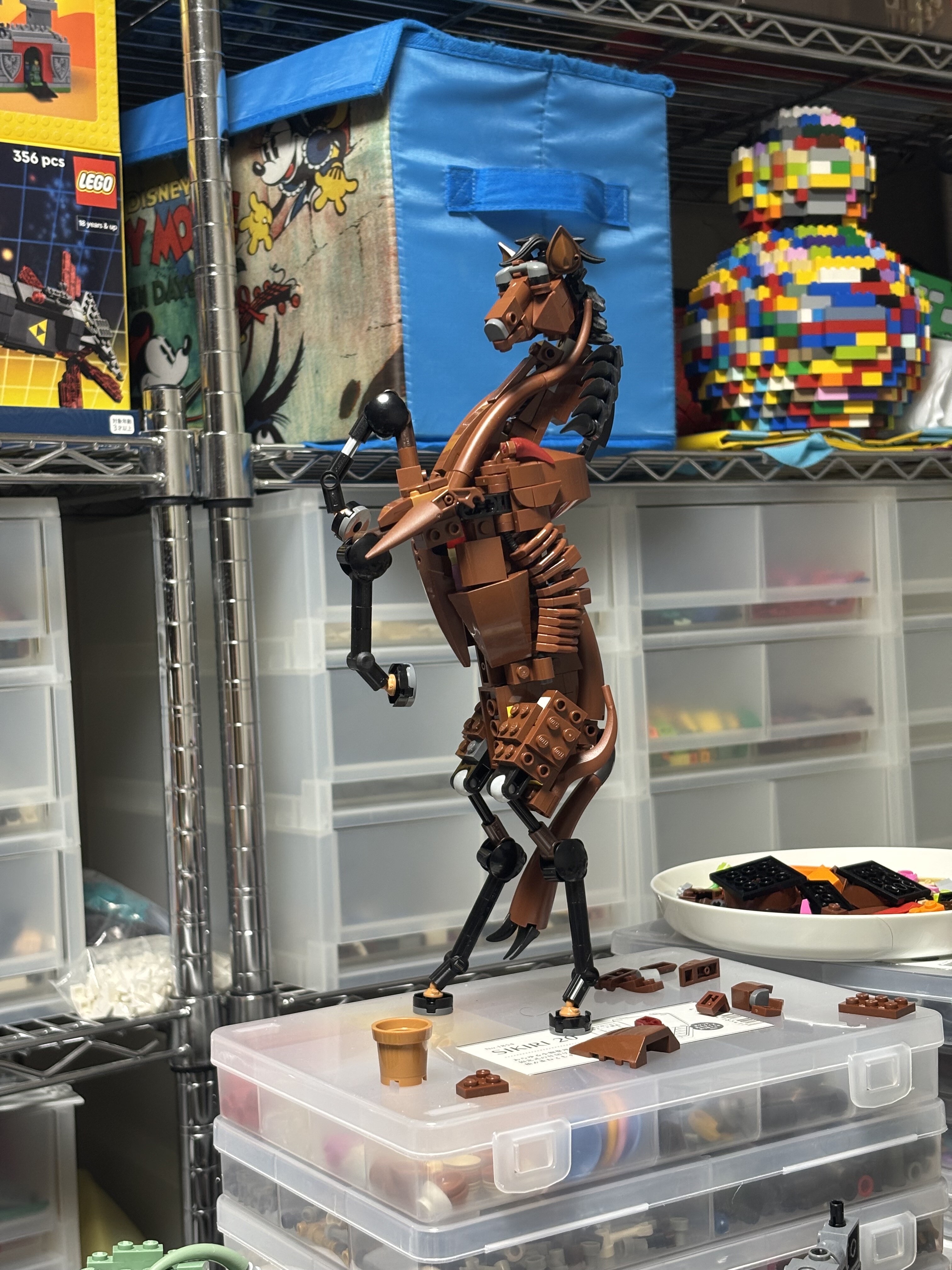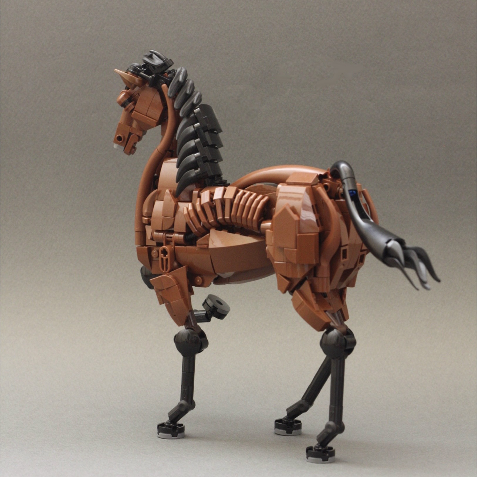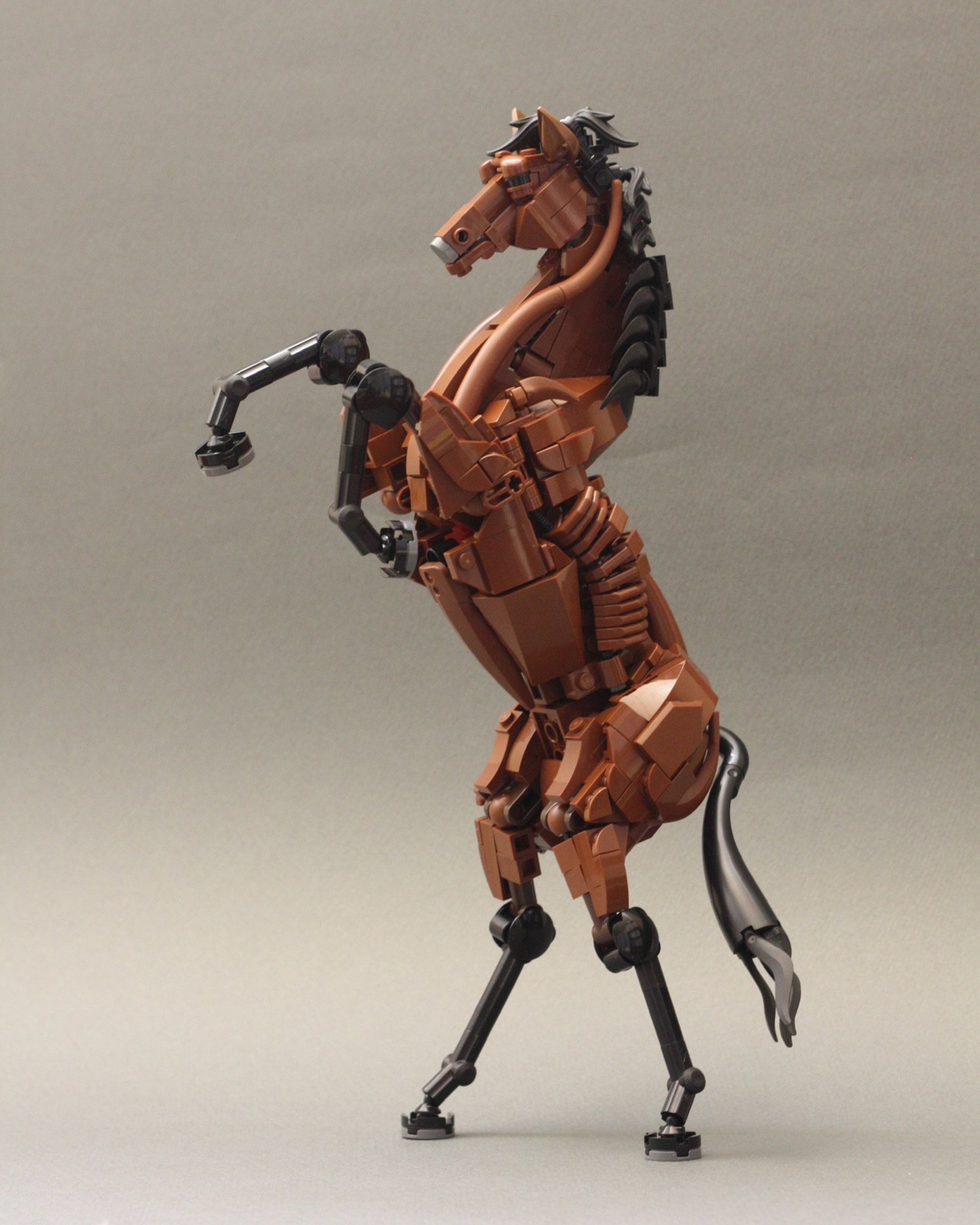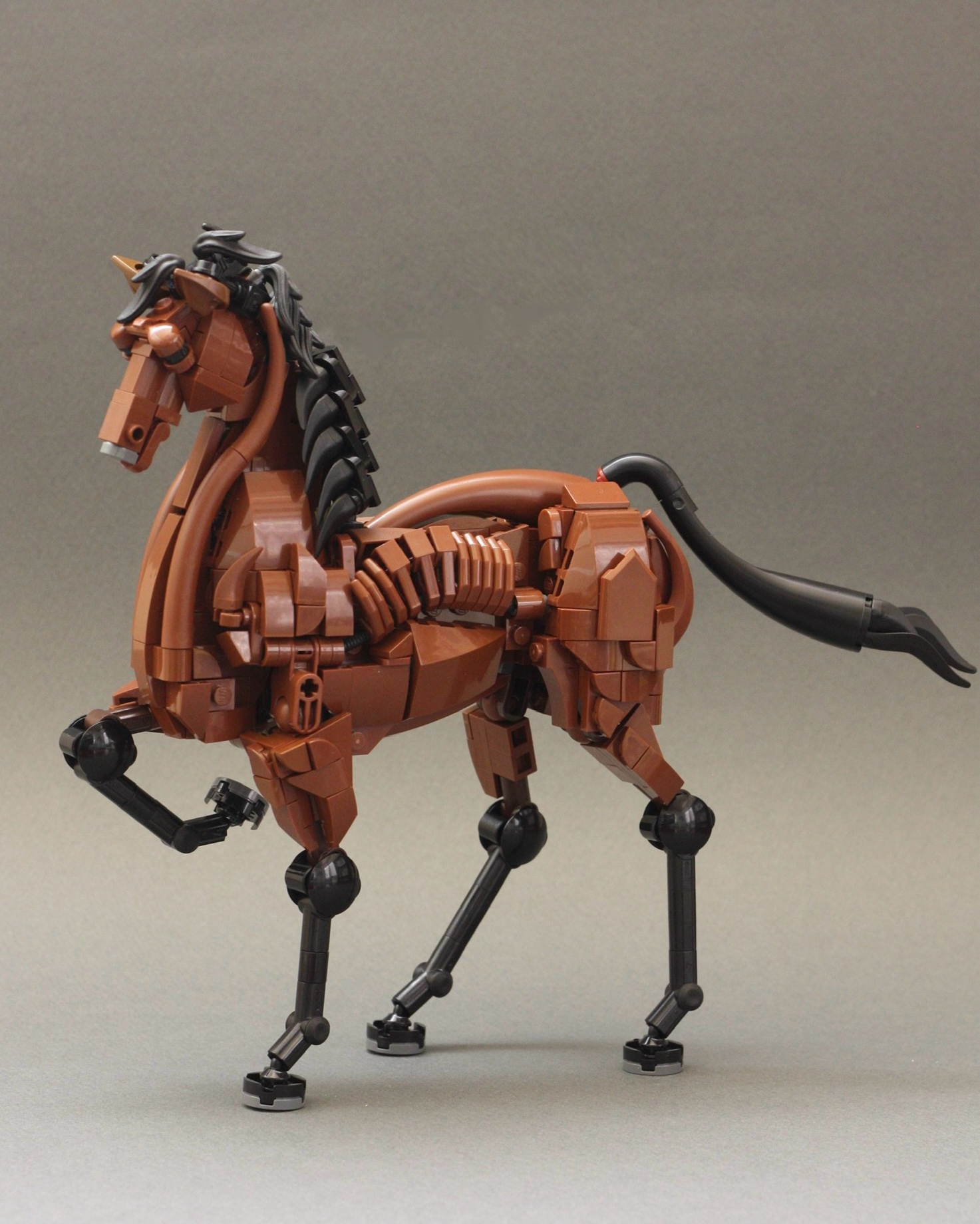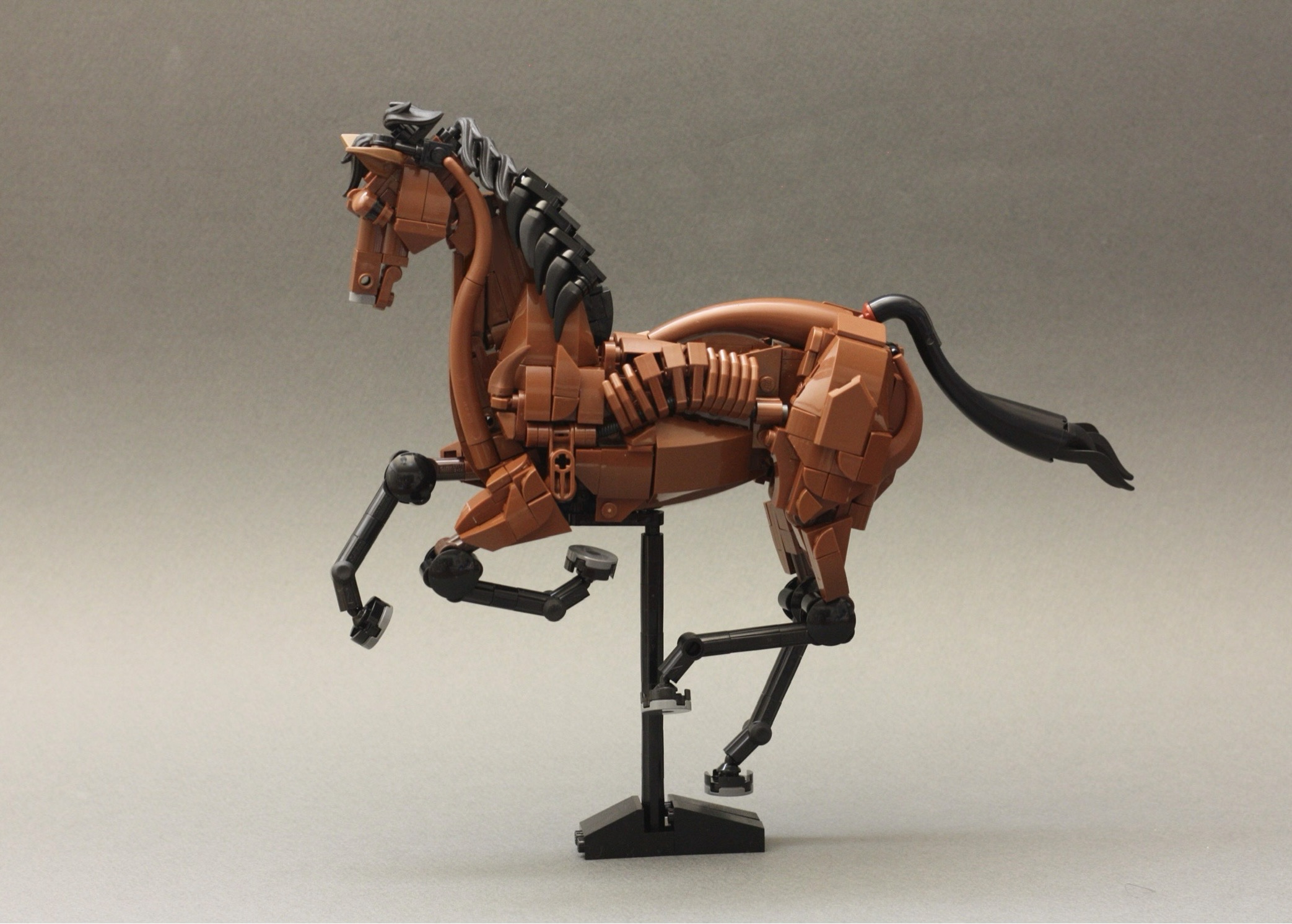 以前作ったトラなんかは顔の模様など複雑なのででかくなってしまいましたが、馬はシンプルなので少ないパーツ数で小さくできました。
