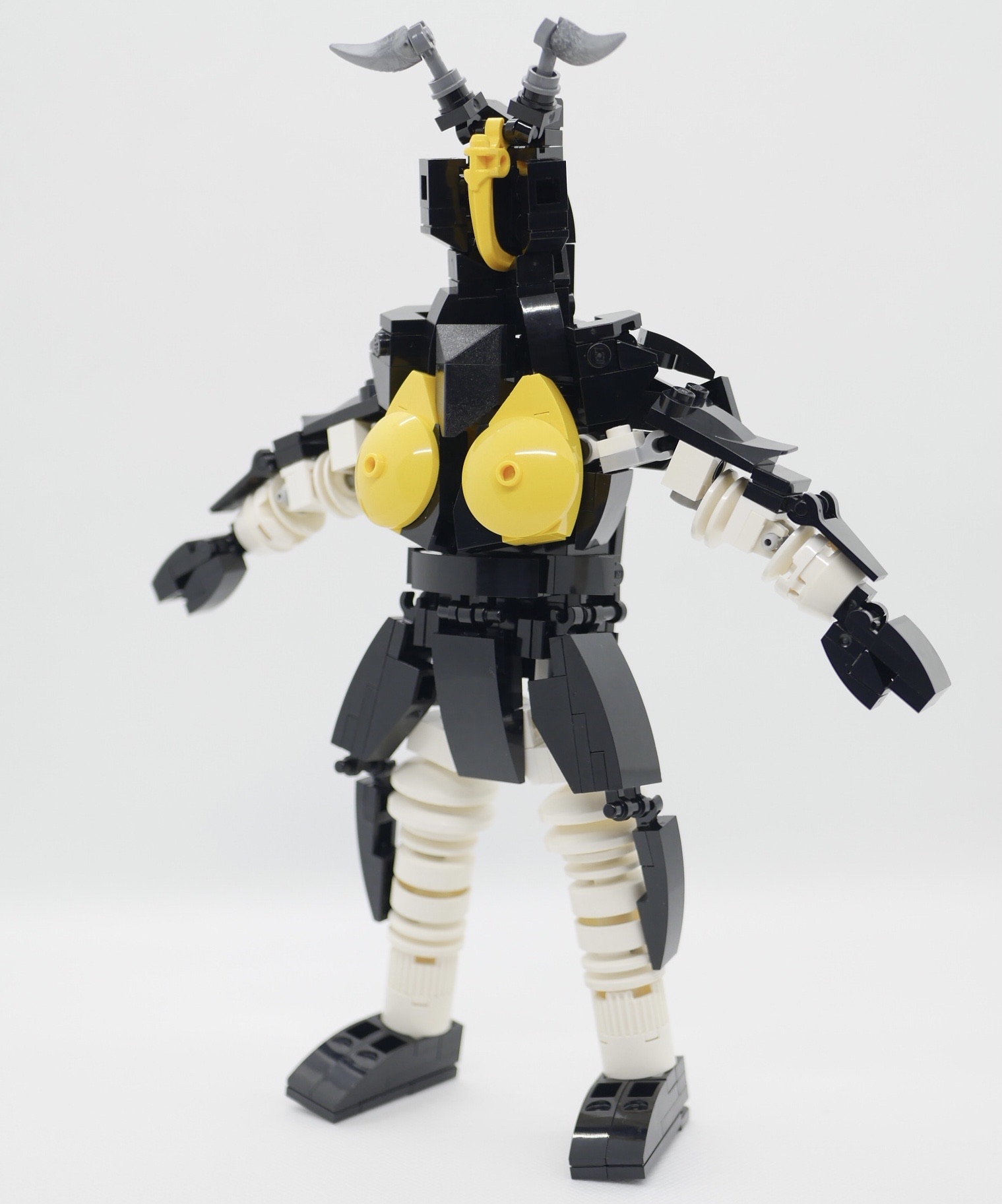 今回は関節の可動域がいつもより広いのがポイントです。ただ膝は曲がりません。ゼットンが膝曲げるようなシーンあまり無い気がしたので、わざわざつくる必要ないかなぁと。